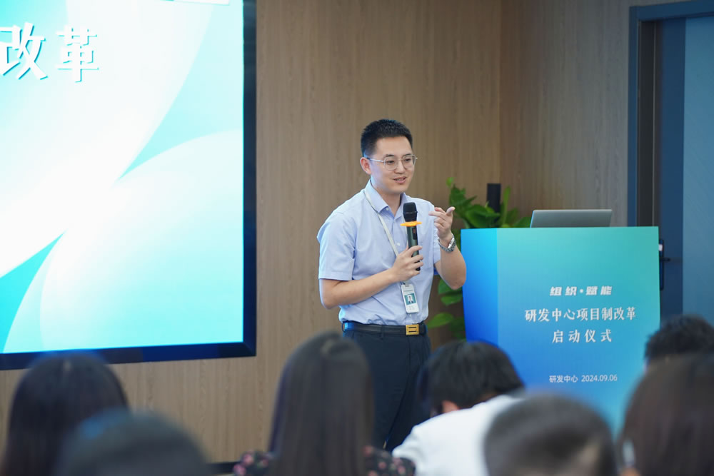 隨后,科研管理部總監(jiān)李曹為大家詳細介紹了本次改革施行方案,從整體架構(gòu)的變化到全新的分配機制、以及項目制對應(yīng)的責權(quán)劃分都展開了細致的講解。