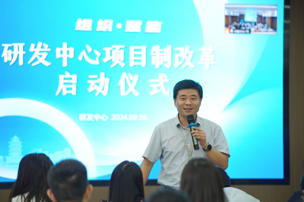 他表示公司對本次改革充滿期待,同時公司也將始終站在每一位員工身后,不斷健全研發(fā)管理制度,隨時為大家的創(chuàng)新創(chuàng)業(yè)提供切實保障。藍圖已繪就,研發(fā)中心全體人員將凝心聚力、揚帆啟新程!